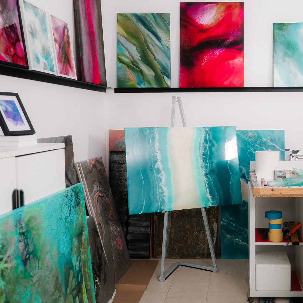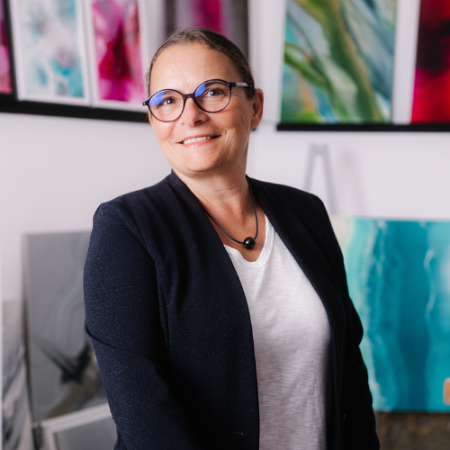 Für mich sind Kunst und Finanzen wie zwei mutige Farben auf derselben Leinwand. Viele kennen mich zuerst als Künstlerin, die mit Acryl, Harz und Tinte ihre eigene Welt erschafft – frei, intuitiv und immer bereit, Neues zu entdecken.